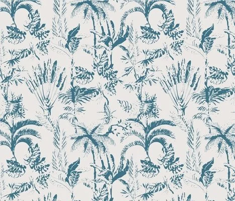 Jungle Book, Milk Indigo- 12”x 12” Basic repeat