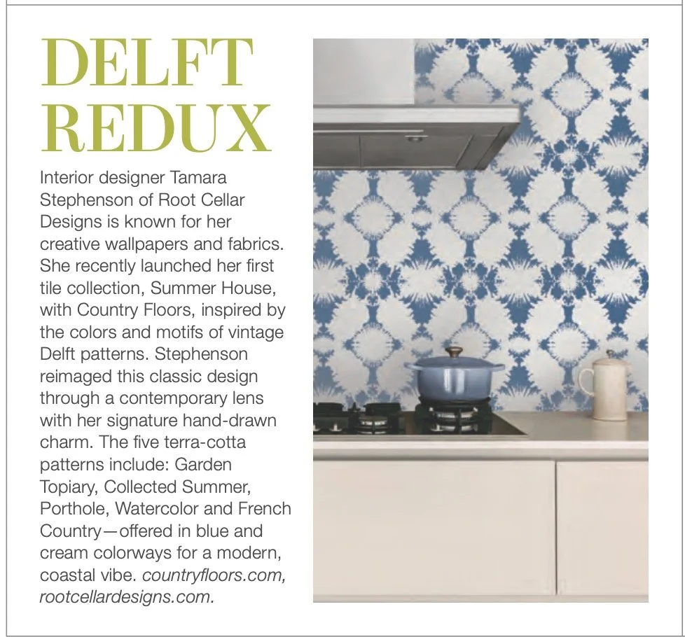 In addition to the showrooms and representatives below who carry our line, see Tamara’s design work and root cellar designs textiles at the upcoming Lenox Hill Spring Gala. Tamara will don a table in textiles and showcase the new tile collection with Country Floors.